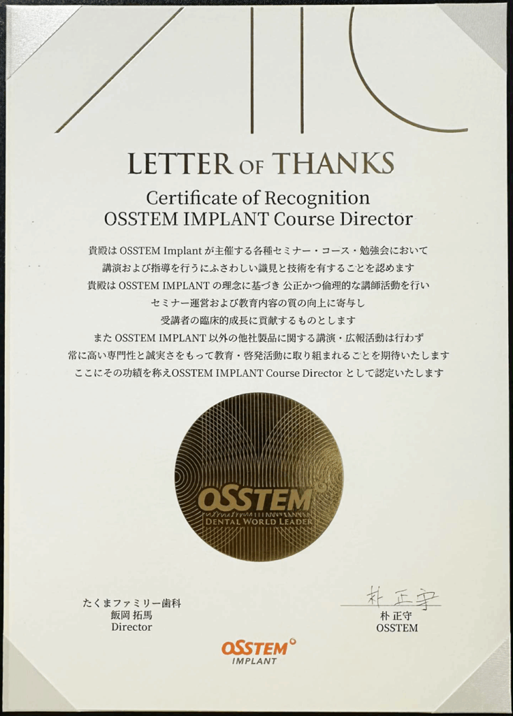 - OSSTEM 矯正コースディレクター 認定医